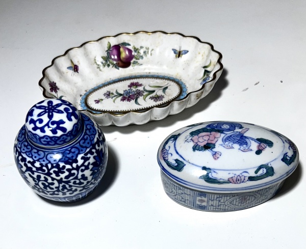 • Três peças  um potiche medindo  7 de altura ,um porta comprimido 9 de largura  e um bow  14 x 10