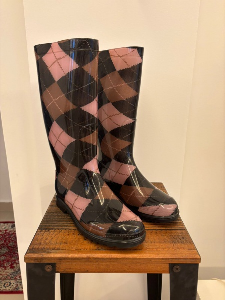 • Bota galocha feminina Losangos cano longo. Nunca usada. Indústria Argentina TAM. 37Med. 34 alt