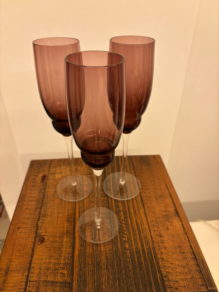 • 3 taças em vidro na tonalidade Uva  Med.  26 alt. X 7 larg. base