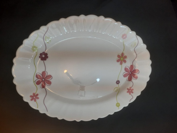 • Travessa em porcelana branca com bordas onduladas e um delicado acabamento decorativo com flores , com o mesmo design refinado e bordas onduladas com estilo clássico, com um toque elegante, ideal para ocasiões especiais ou para dar um ar sofisticado às refeições do dia a dia. - Medidas: