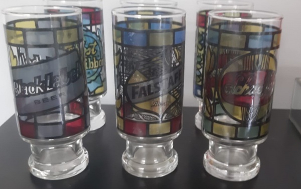 • Seis copos vitral com pés - Altura: 16 cm