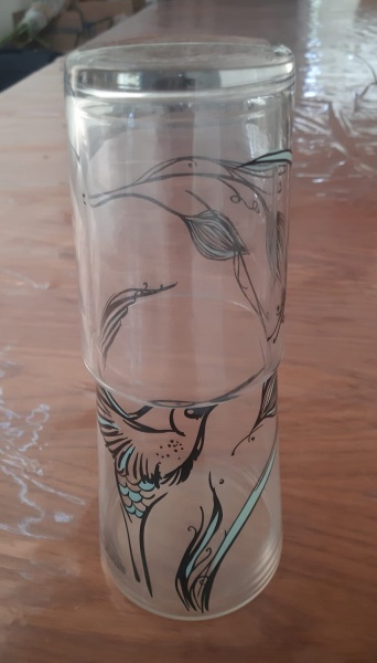 • Vidro , delicada e funcional, a moringa e copo em vidro translúcido traz um toque de charme à sua mesa ou cabeceira. Com uma decoração encantadora de flores e pássaros, assinada pela Imaginarium, esta peça é perfeita para quem aprecia design criativo e beleza nos detalhes. Altura: 22 cm - Lote com pequeno lascado.
