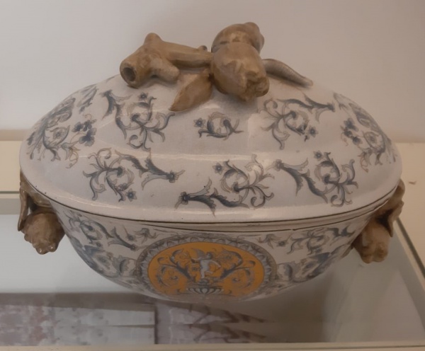 • Sopeira pequena e oval , fiança oriental , policromada , pintadas a mão com detalhes em frutas no pegador , e alças, polida e pintada à mão, apresenta detalhes em frutas nos pegadores e alças. Medidas: 18x20x28 cm