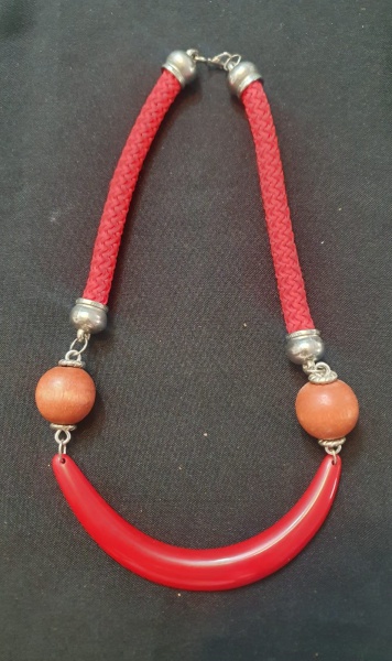 • Cordão artesanal: com contas vermelhas com pingente ao lado , central de estilo vibrante; com  fio trançado  , inspiração natural e orgânica.