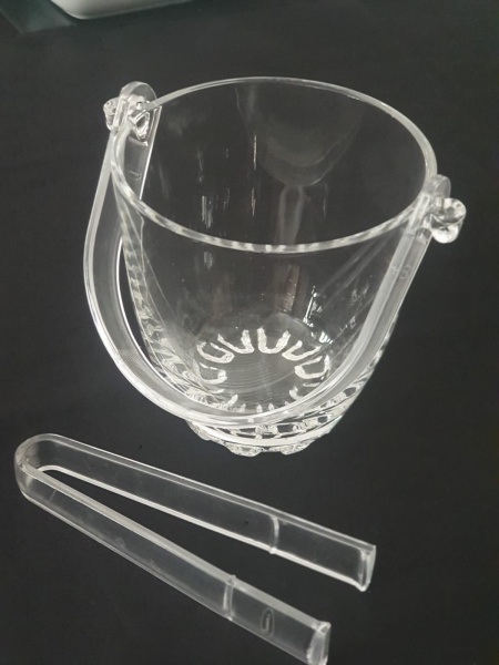 • Belíssimo balde de gelo em cristal com pegador e alça em acrílico - Altura: 13 cm e 12 cm ( boca)