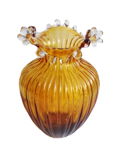 • Belo murano com bordas onduladas e esferas nas pontas. Medida 21cm de altura.